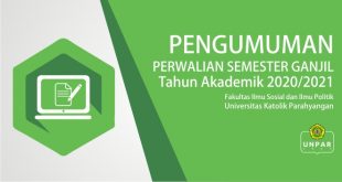 Sehubungan dengan akan dimulainya Perkuliahan Semester Ganjil 2020/2021 maka dengan ini kami sampaikan informasi mengenai Perwalian Semester Ganjil 2020/2021. Mahasiswa silahkan melihat pedoman yang dikeluarkan oleh Fakultas Ilmu Sosial dan Ilmu Politik Universitas Katolik Parahyangan.