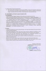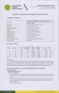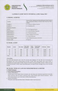 Pelaksanaan audit meliputi Standar Dosen, Standar Tenaga Kependidikan, Standar Kemahasiwaan & Lulusan/Alumni, Standar Kompetensi Lulusan dan Standar Kurikulum, Standar proses & penilaian pembelajaran, Standar Penelitian, Standar Publikasi Karya Ilmiah, Standar Pengabdian kepada Masyarakat, Standar Pembiayaan, Sarpras dan Teknologi Informasi, serta Standar Identitas, Pengelolaan dan Kerjasama dilakukan pada tanggal 9 – 15 April 2021