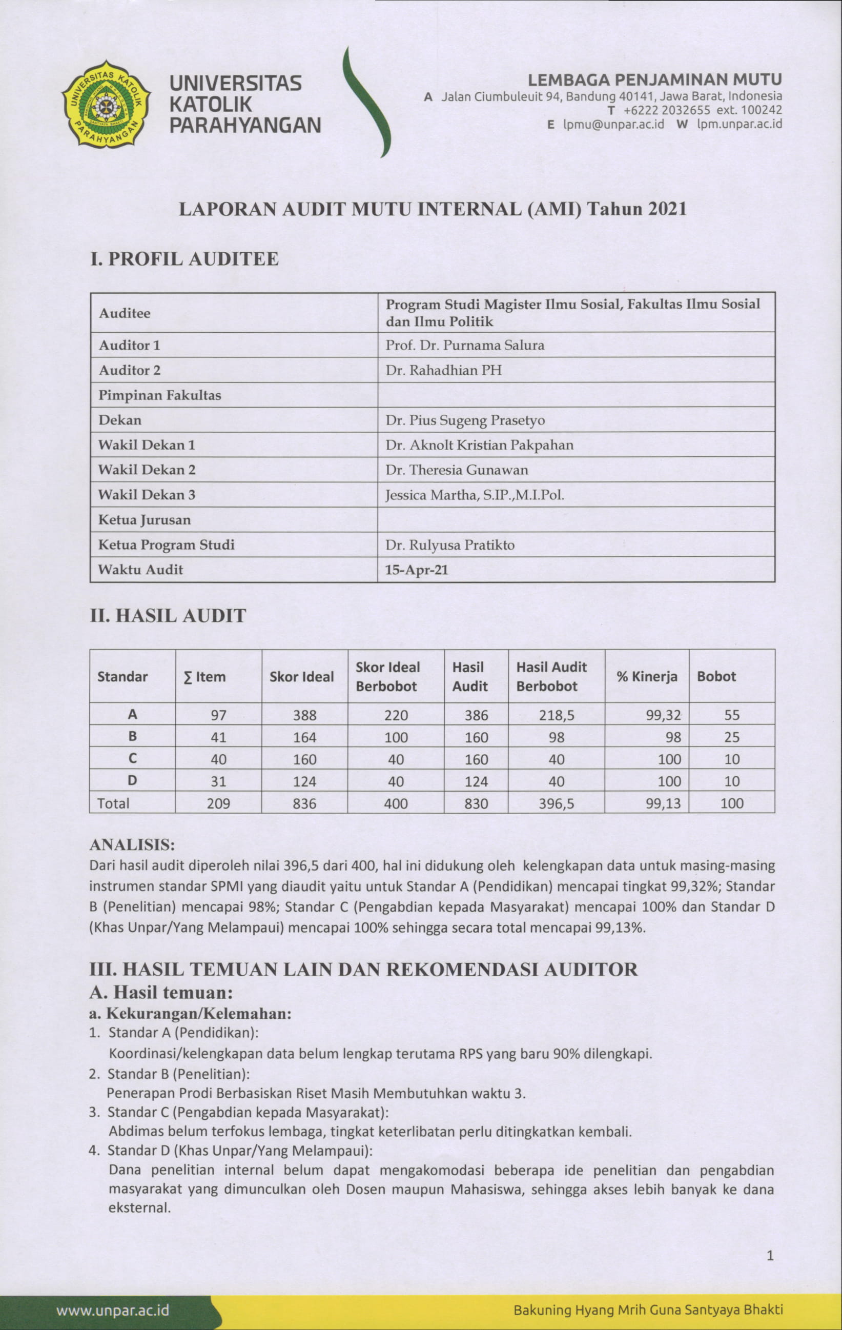 Kebijakan Evaluasi CPL dan Pembelajaran FISIP UNPAR