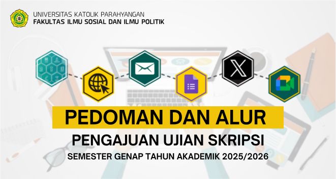 - Setelah mahasiswa mendapatkan tandatangan pembimbing dan para penguji, selanjutnya mahasiswa mengajukan permohonan tandatangan Dekan dengan mengirimkan file lembar pengesahan skripsi ke email akademik.fisip@unpar.ac.id