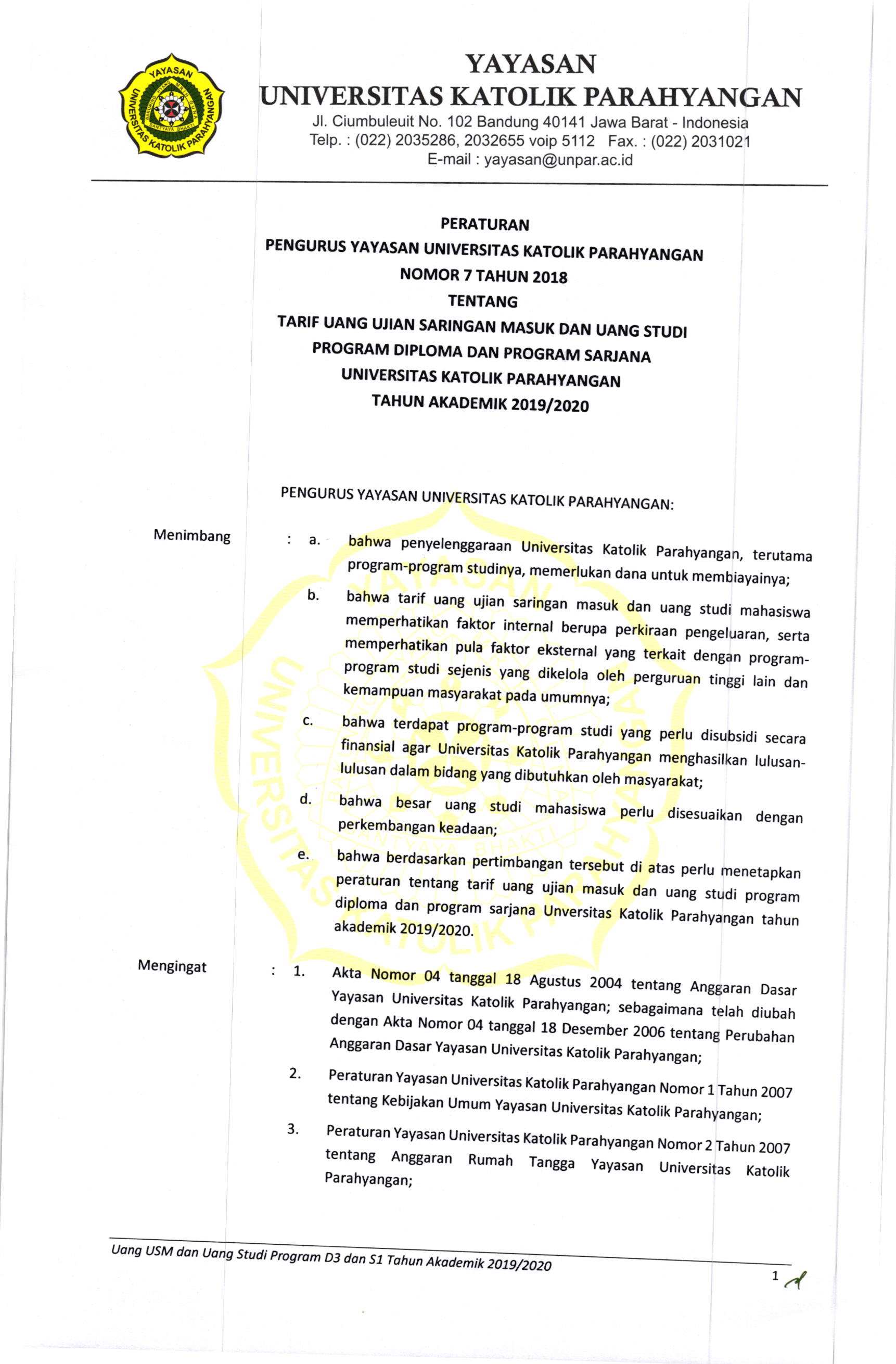 SK Tarif Biaya Kuliah 2019-1